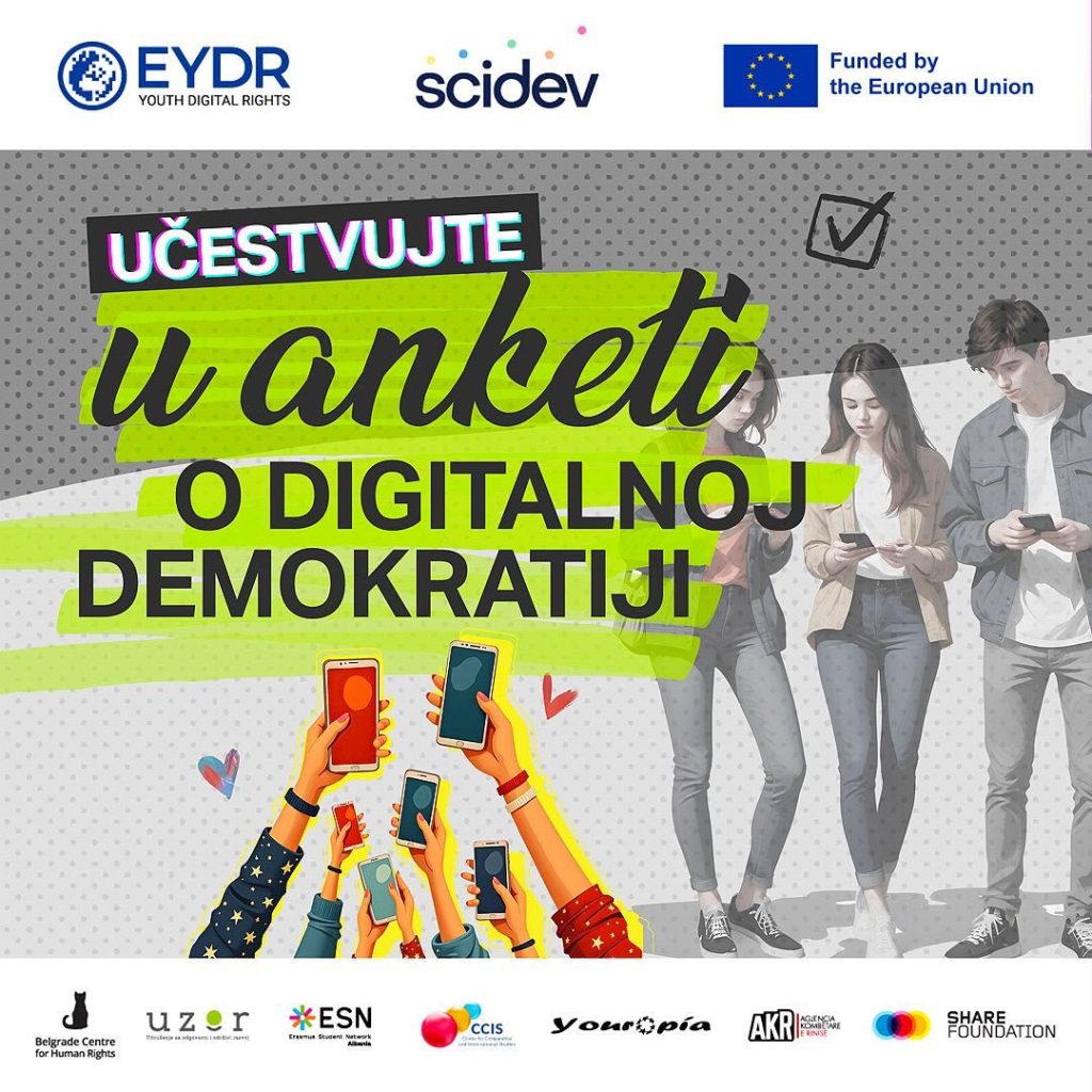 Our project, “Youth Participation in Digital Democracy: From Digital Skills to Digital Rights for Youth with Fewer Opportunities in the Western Balkans” (EYDR), aims to create better conditions for young people to realize their potential and provide equal opportunities for the most effective use of digital media to drive positive change in the community. We designed this survey to better understand the connections between digital rights and skills, digital literacy, and youth participation/engagement/activism in the digital sphere.