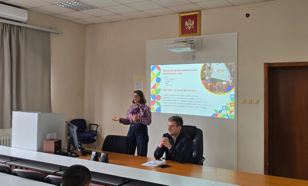 Na Fakultetu političkih nauka u Podgorici, na smjeru Socijalna politika i socijalni rad, danas su u okviru redovnih predavanja profesora Uglješe Jankovića studentima druge godine predstavljene ,,Preporuke mladih ambasadora/ki interkulturalizma’’ nastale u sklopu projekta „Živjeti različitost: Mladi u interkulturalnom dijalogu “.